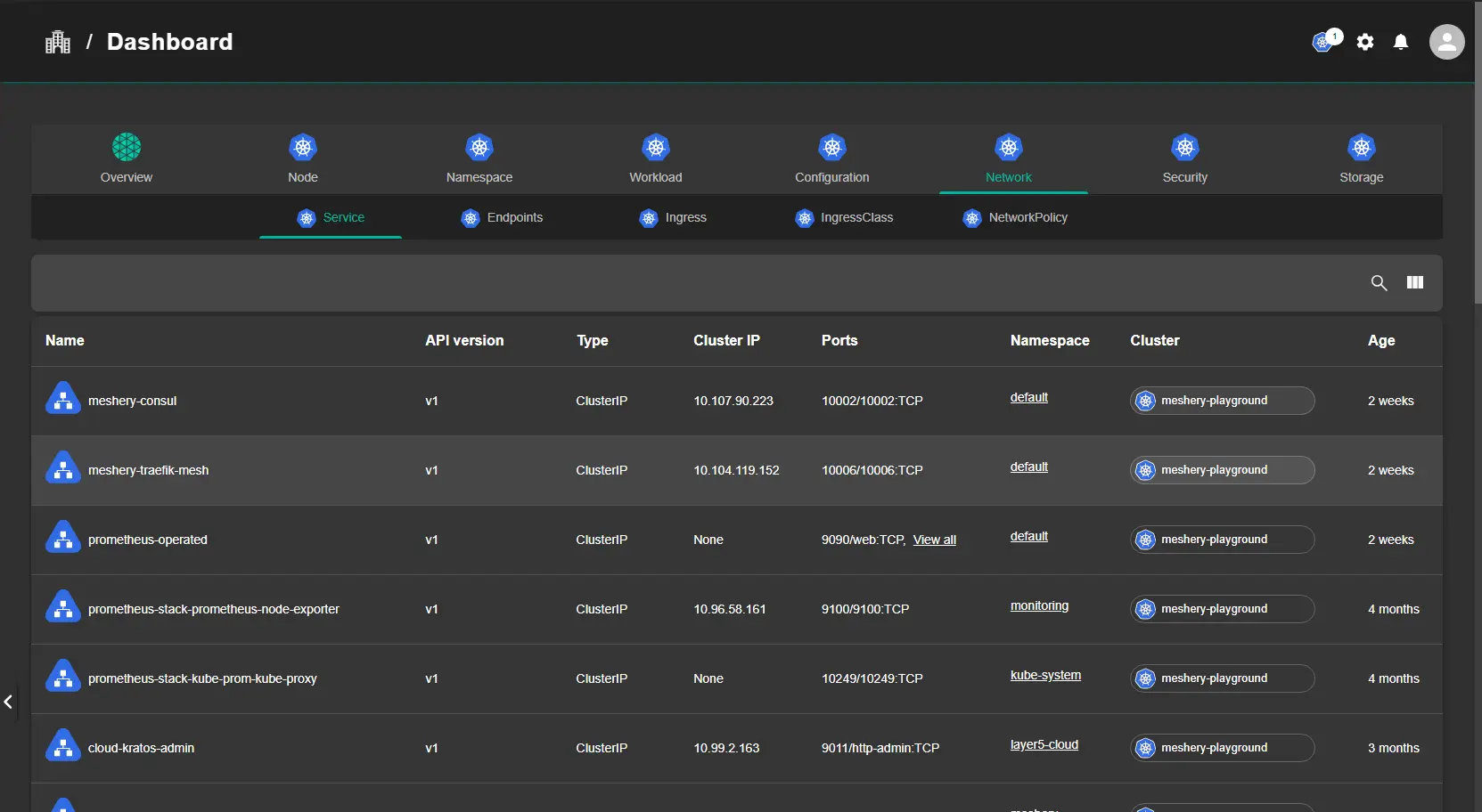 The Kubernetes operator for Meshery, supports discovery and eventing of greenfield and brownfield of your workloads, services, deployments, replicasets, pods, containers, services, persistent volumes and all of your Kubernetes-based infrastructure.